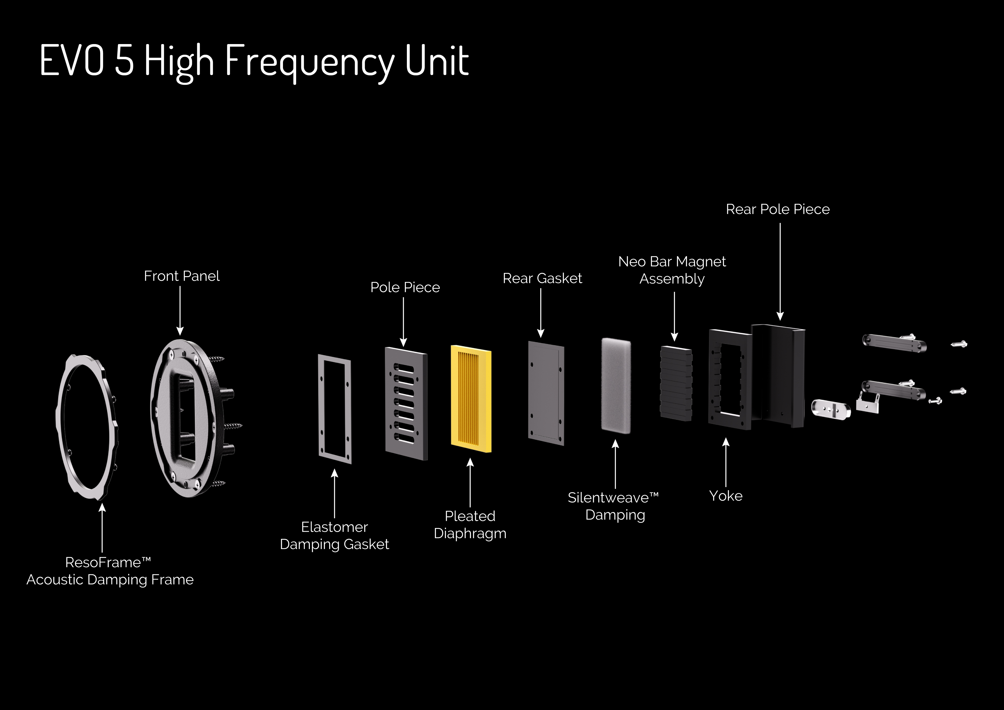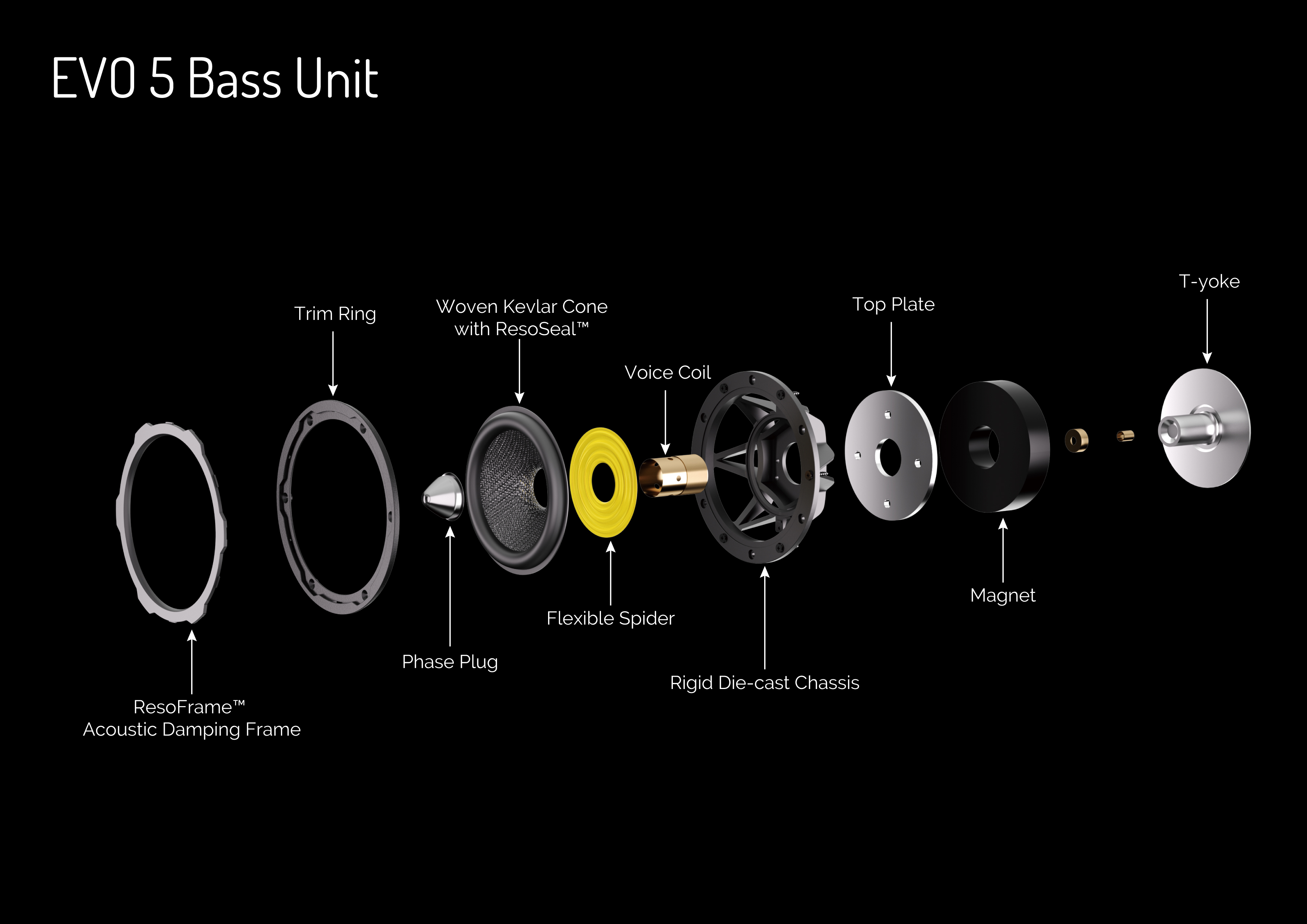 これらのアプローチによりEVO5のウーファーユニットはパワフルと明瞭を両立させ、比類なき低域再生を実現しています。