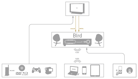 | 入力 | アナログ×3(RCA×2/ステレオミニ×1) デジタル(同軸・光)×1 ワイヤレス(Wi-fi・専用トランスミッター使用)×1 ワイヤレスKleer®受信機内蔵 オートパワーオフ回路 |